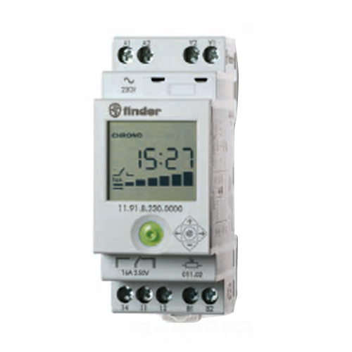 Releul crepuscular modular 11.91.8.230.0000 este destinat controlului automat al iluminatului în funcție de lumina ambientală. Are un contact normal deschis (1C) și suportă un curent maxim de 16A, fiind ideal pentru sisteme de iluminat rezidențiale sau industriale. Este ușor de integrat în panourile electrice modulare și asigură funcționarea eficientă a sistemelor automate de aprindere și stingere a luminii.