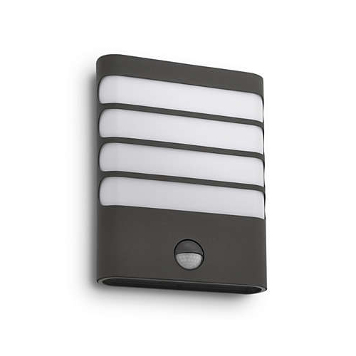 Aplica cu senzor PHILIPS Raccoon este ideală pentru iluminatul exterior rezidențial, oferind o lumină clară și eficientă datorită LED-ului de 3W și 270lm. Carcasa antracit asigură un design modern și rezistență la intemperii. Compatibilă cu sistemele de iluminat exterior, facilitează economisirea energiei prin senzorul integrat de mișcare. Produs de calitate, cu garanție de 24 luni, potrivit pentru diverse spații exterioare.