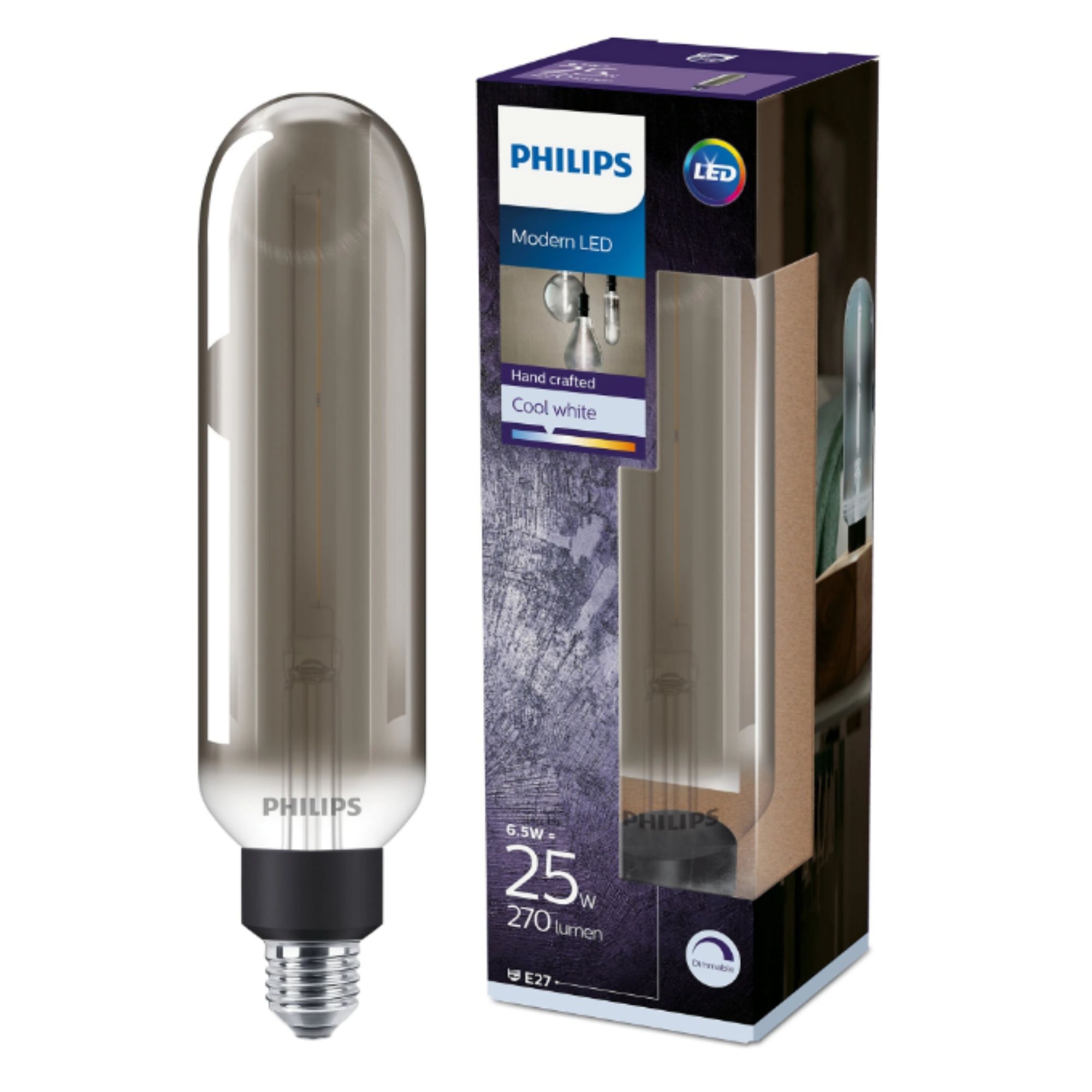 Becul LED PHILIPS BEL LED Classic Giant T65 Smoky are o putere de 25W și oferă o luminozitate de 270 lumeni cu o temperatură de culoare neutru-albă de 4000K. Designul său special, cu formă Giant T65 și sticlă Smoky, asigură o iluminare uniformă și un aspect modern. Este ideal pentru diverse spații care necesită o sursă de lumină eficientă și durabilă. Produsul beneficiază de o garanție de 24 luni, confirmând calitatea și fiabilitatea sa.