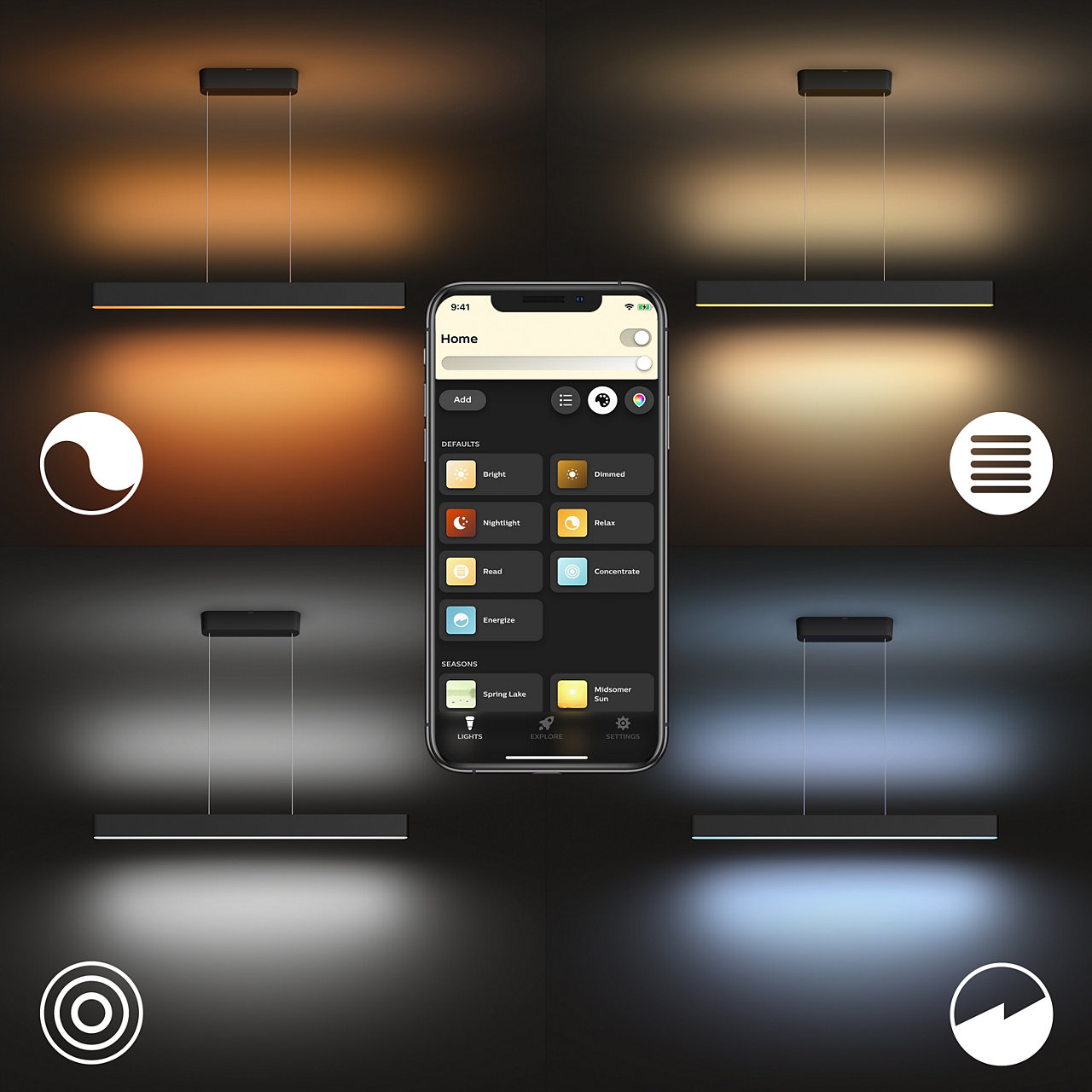 Corp de iluminat inteligent PHILIPS HUE Corp susp Ensis LED cu o luminozitate de 5500lm și conectivitate Bluetooth pentru control facil. Iluminare RGB ajustabilă, gata să transforme orice spațiu cu culori dinamice și ambient personalizat. Design modern, în culoare neagră, potrivit pentru interior. Compatibil cu sistemele smart pentru o experiență intuitivă și eficientă.